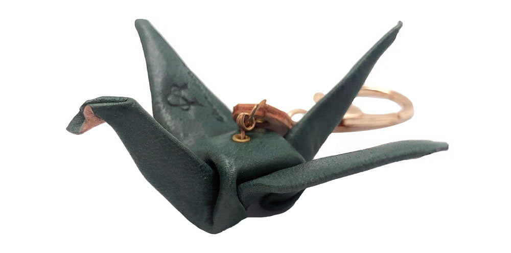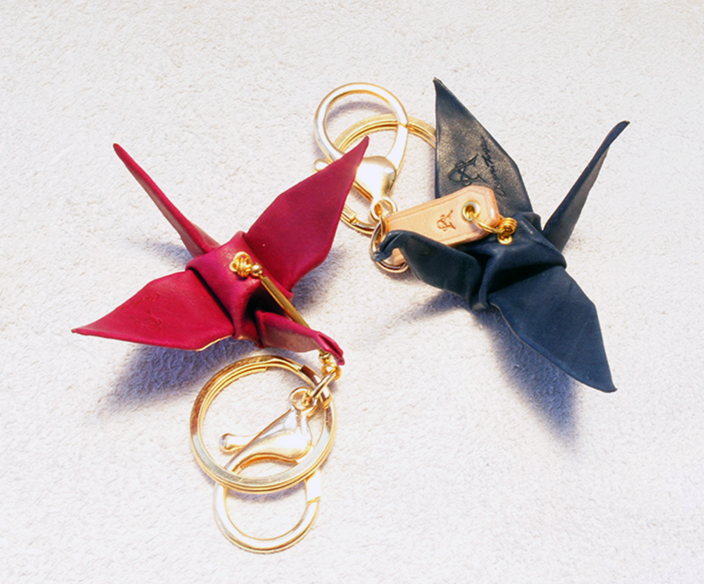 Leather Paper Crane Keychain (Leather/ Metal)