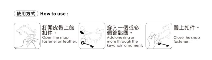 不銹鋼材質,耐用不易損壞,搭配真牛皮繩,為鑰匙們找一個
