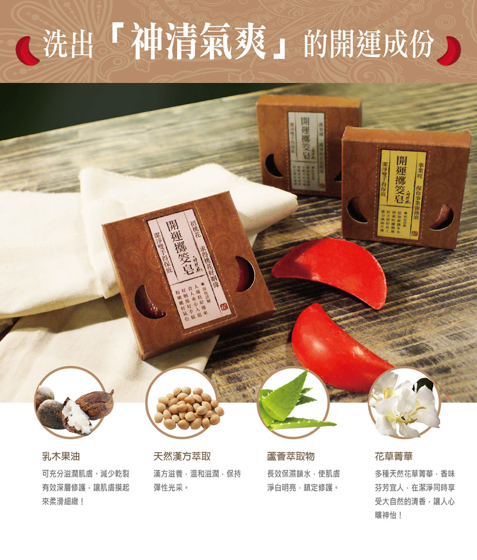 獨創 1:1 擲筊造型香皂,結合實用、可愛、創意、高人氣及開運元素,不僅香氣怡人,更引領時尚潮流!