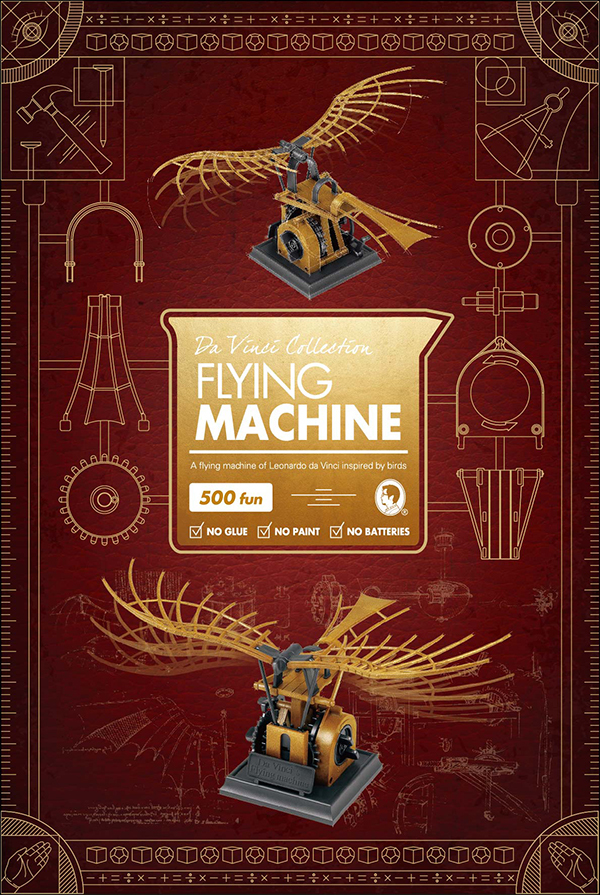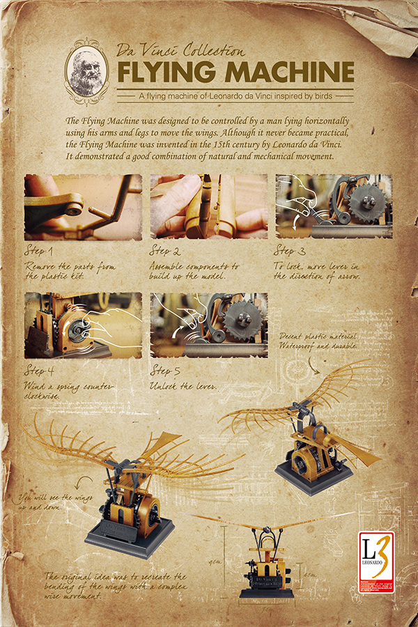 包含設計了大量的機械裝置如降落傘以及研究鳥類的飛行動態;