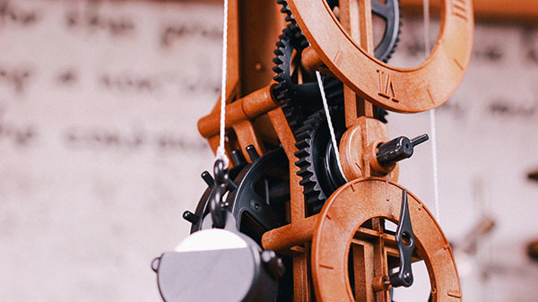 通過從懸掛的重量添加或移除硬幣來調整時鐘的速度,