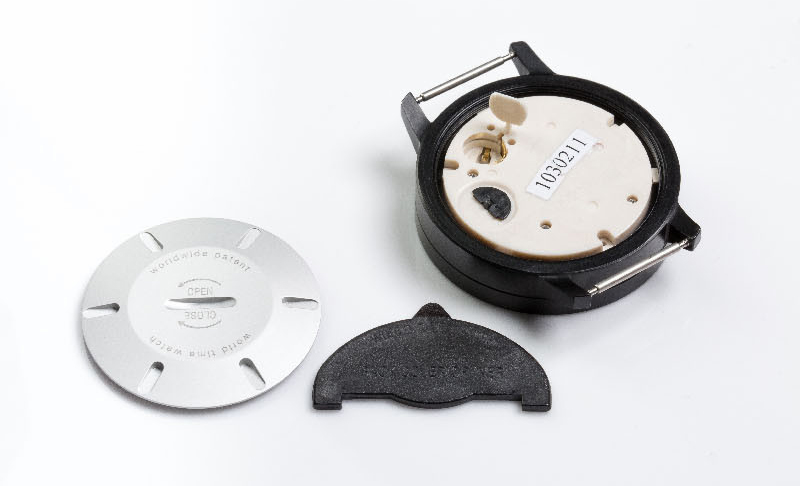 移除背蓋後露出的黑色旋鈕,則可用來調整時間誤差