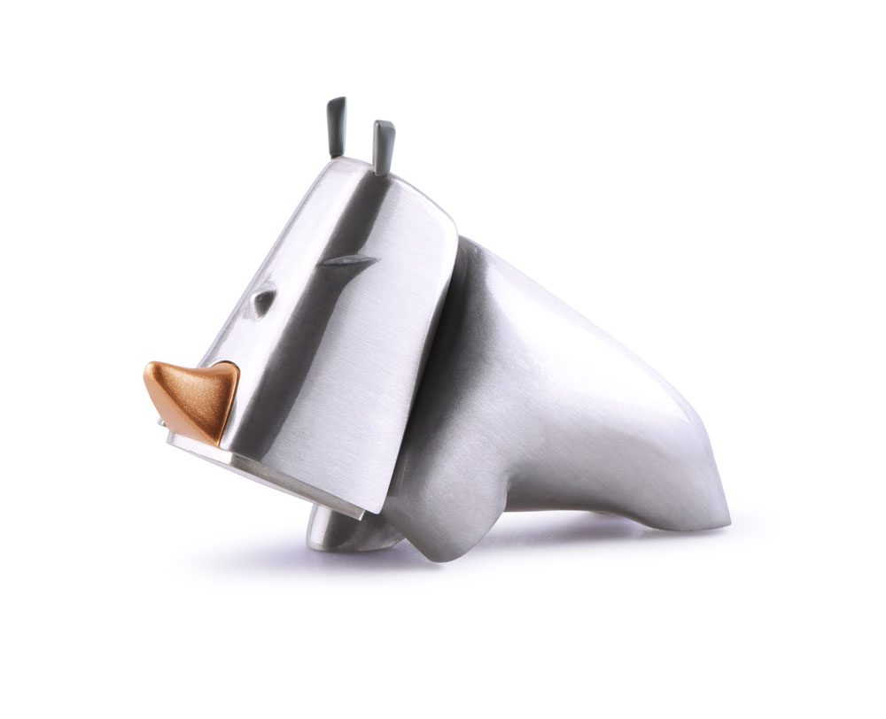 犀牛角為極具質感的金屬,除了強調犀牛的特色之外,