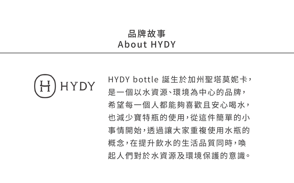 | 超高品質 | HYDY冷水瓶系列商品皆經嚴格品質控管符合瑞士SGS安全標準,不含 BPA (酚甲烷/雙酚A) 等對人體有害物質 ,不起化學變化,容易清洗、更耐腐蝕,讓您無憂無慮健康的喝水。