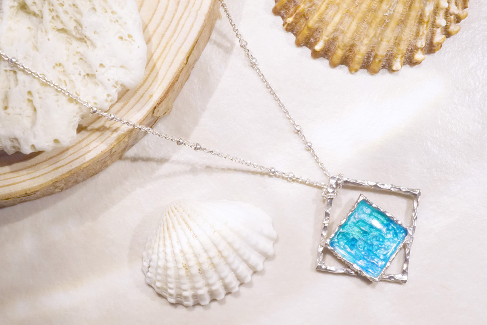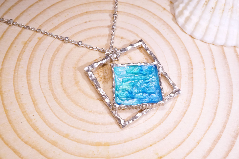 Marine- Geometric Ocean Enamel Necklace A