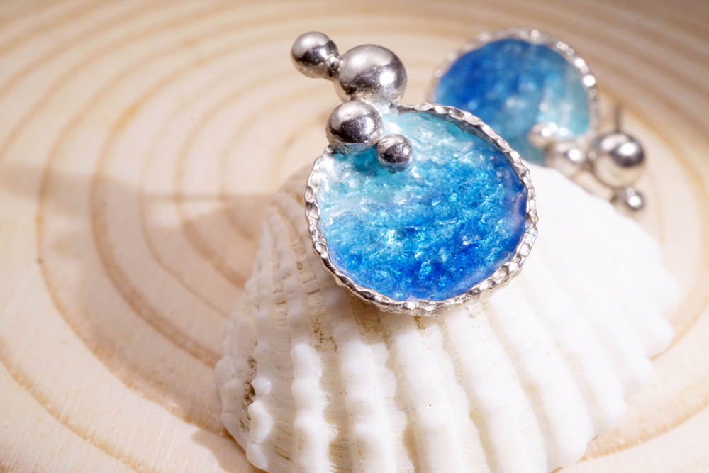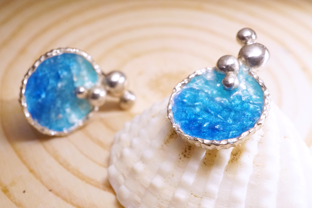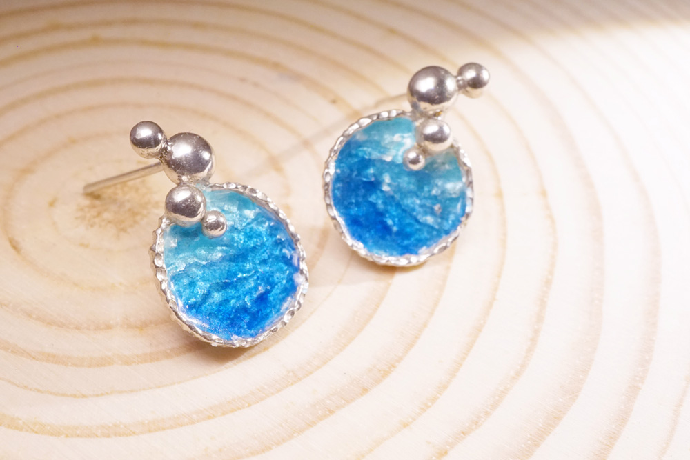 【Chia Jewelry】海洋系列-泡泡珐瑯銀耳環A