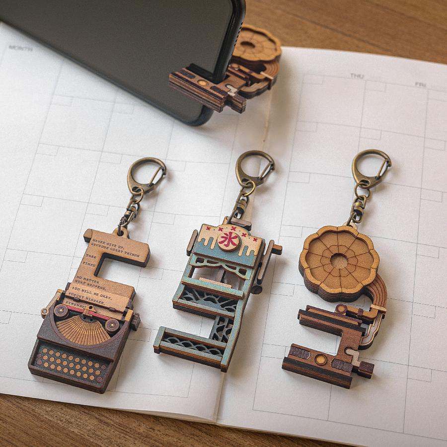 老時光手機架從側方插入即可固定手機,手機含殼厚度約12mm