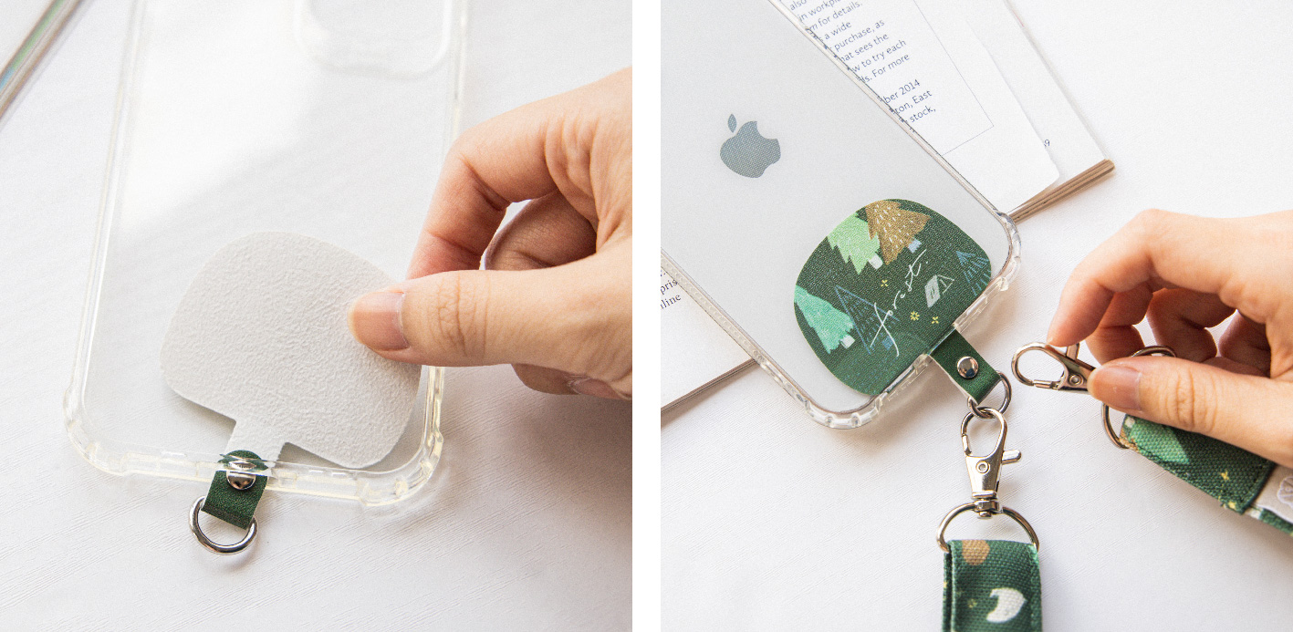 ❷ 再將手機背帶鉤環扣上夾片即可使用 .ᐟ