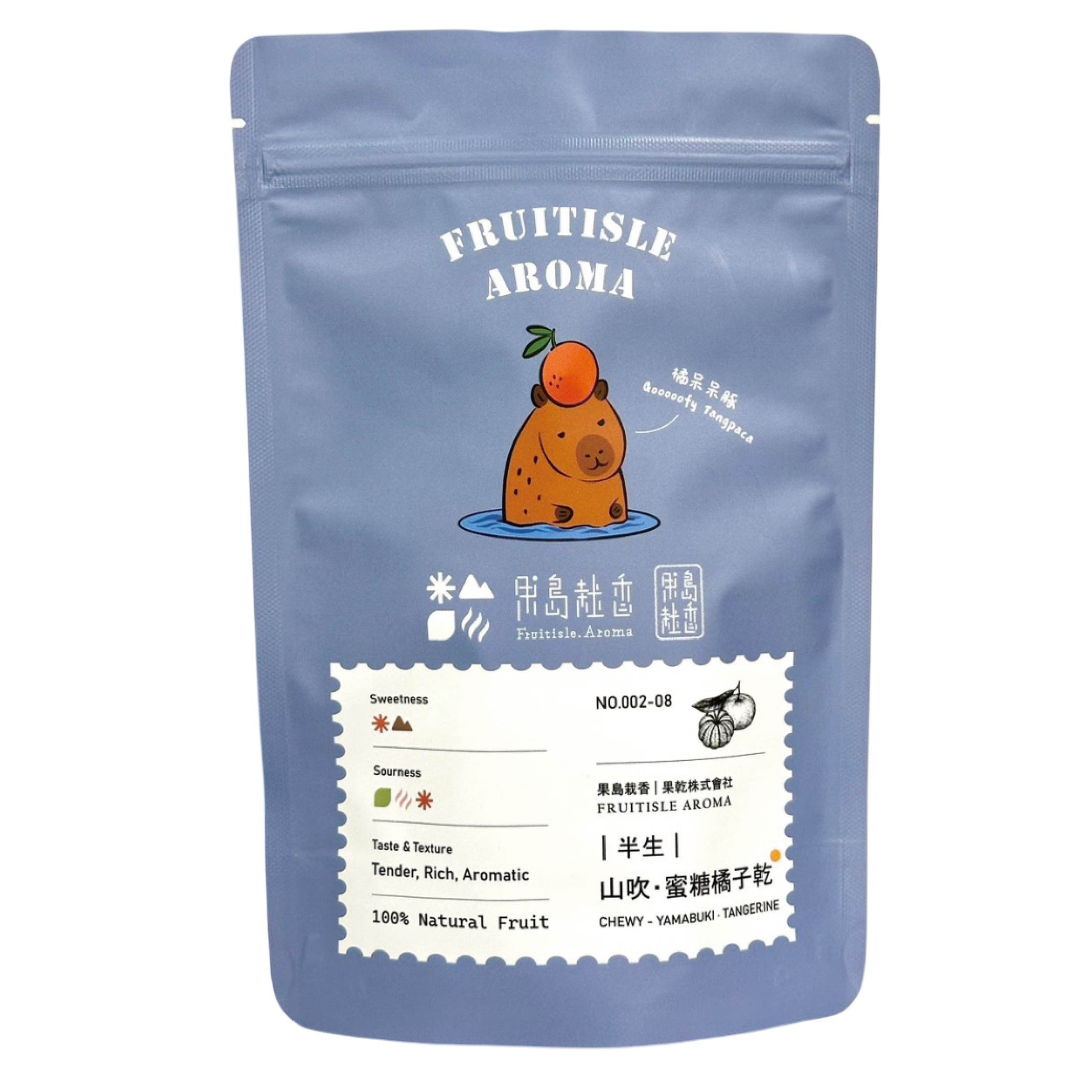嚴選熟成橘子,低溫烘焙製成的半生蜜糖橘子乾,果肉細緻、酸甜交織,保留完整橘皮香氣,挑選山吹色橘果為標準,入口鮮香滿溢。