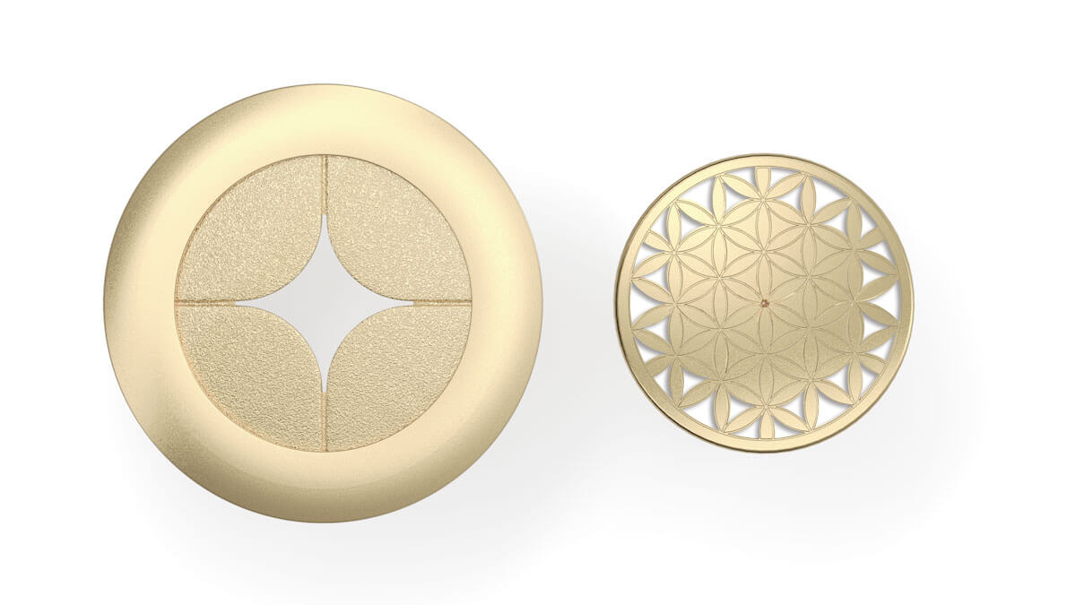 出現在世界上很多古文明,是具有生命能量的圖案,它可以放在具有傳統古錢意象的星芒古錢中間的凹槽。 - 星芒古錢(9cm)