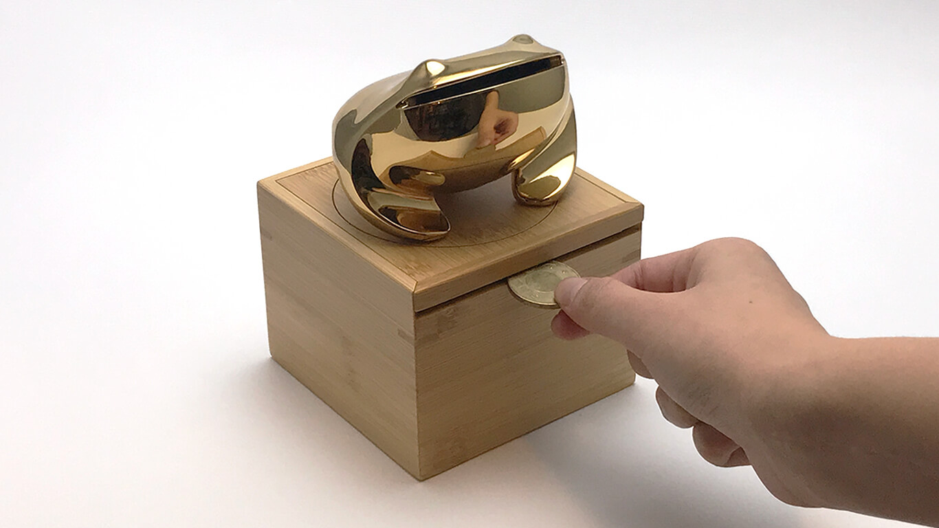 竹盒前有一個長縫,可以當作撲滿使用(可投鈔票)