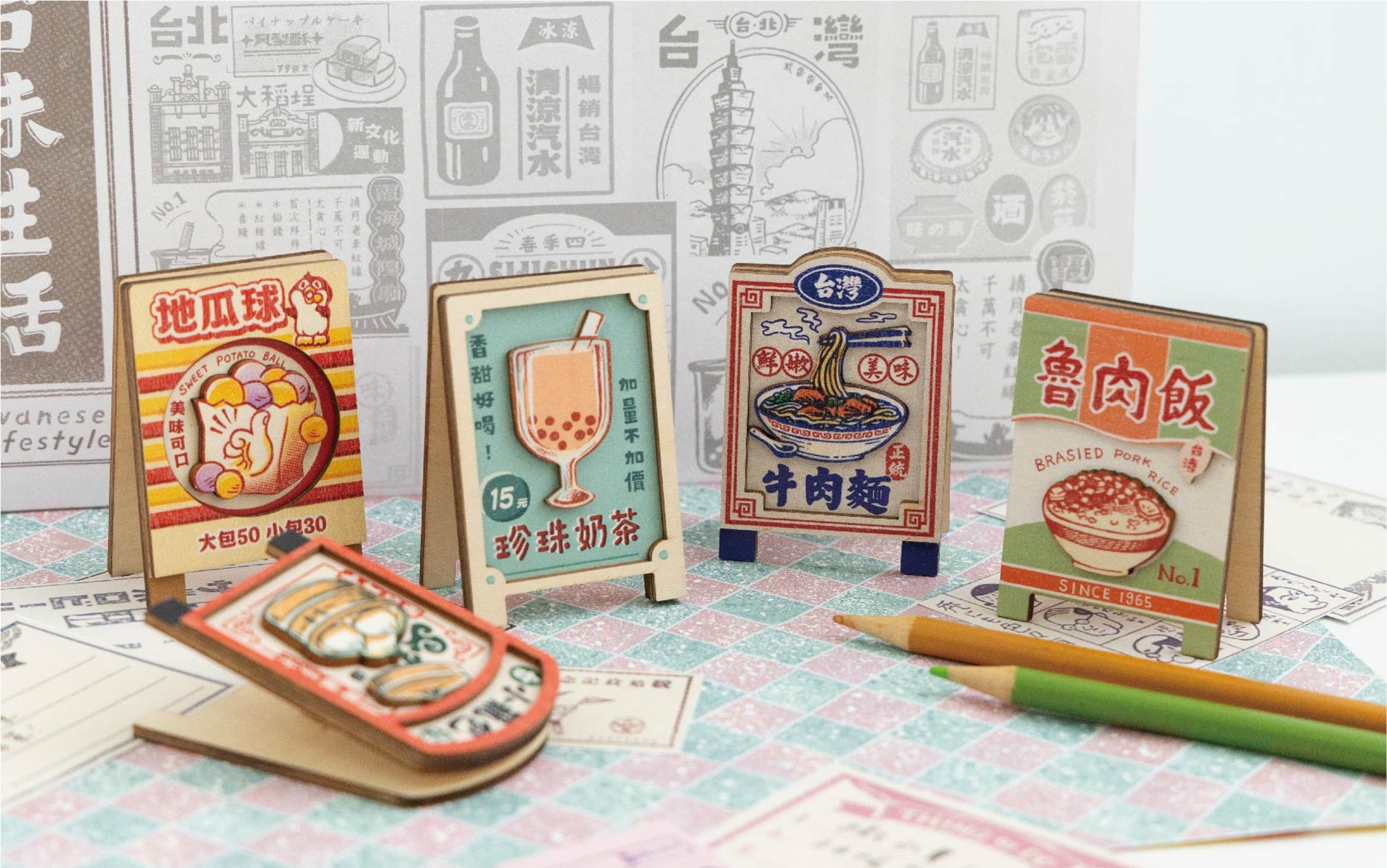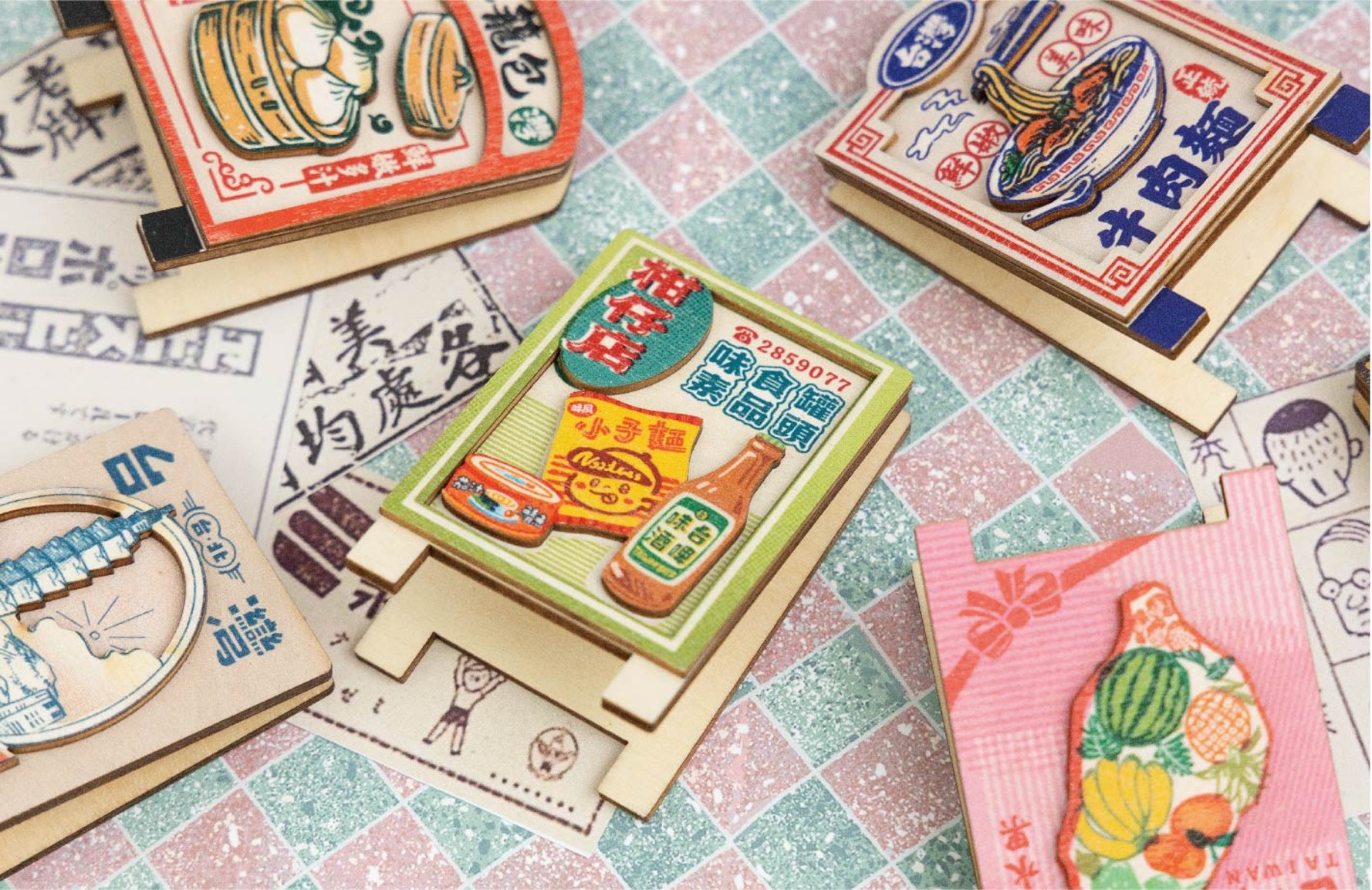 復古木夾搭配台灣早期街景插畫,將老時光濃縮於掌心,