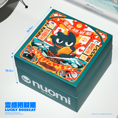 諾米十週年招財貓公仔,搭配豪華的場景寶箱。