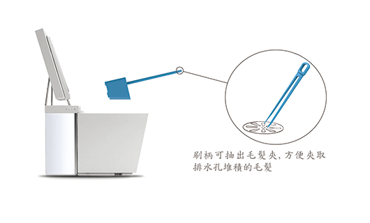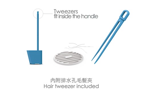 刷柄本身內附一隻毛髮夾,以方便清潔阻塞在浴室排水孔的毛髮。